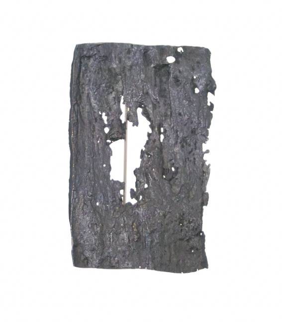Brosche in Silber gegossener Abdruck der Strukture eines Schleifsteins den ich in Norwegen gefunden habe; Silber geschwärzt / brooch impression of an stone structure, from an grindstone i found in Norway, casted in silver; Silver blacked