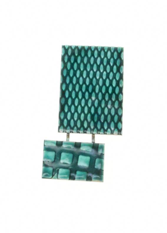 Brosche mit zwei verschieden Strukturen und Emaille, Silber und Emaille/ brooch with two different structures and enamel, silver and enamel