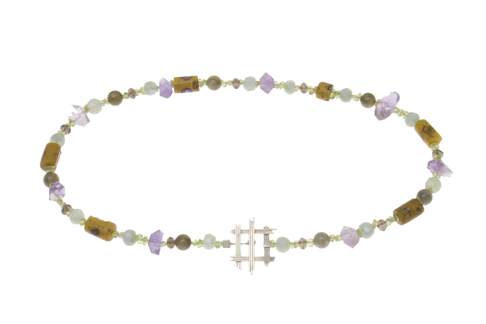Edelsteinkette mit Schloss aus Silber, 925 Silber, Amethyst, Aquamarin, Rauchquarz, Peridot, Labradorit / Gemstonechain with an silverclasp, amethyst, aquamarine, cairngorm, peridot,